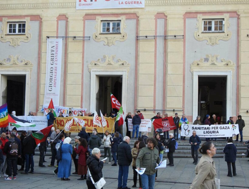 Dopo domenica 29 marzo a Milano e a Firenze, nella giornata del 2 aprile sono state svolte iniziativa a Roma, Torino, Cuneo, Venezia, Napoli e a Genova, dove al consueto raduno settimanale del gruppo praticante l’ORA IN SILENZIO CONTRO LA GUERRA partecipava anche la delegazione ligure della rete SANITARI PER GAZA.