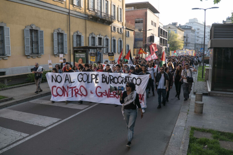 Alle 18.00 Piazza San Babila è gremita. Poco dopo gli interventi, il corteo parte verso la Prefettura di Milano. Arrivato a destinazione, una delegazione chiede di poter lasciare uno striscione davanti all’entrata. Seguono una carica da parte delle forze dell’ordine e scontri. Unica nota negativa di una mobilitazione pacifica realizzata da molte realtà, unendo le forze contro la deriva autoritaria nel nostro Paese. Una mobilitazione per costruire oggi un argine, domani un’alternativa.