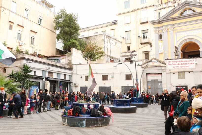 Martedì 1° aprile, in piazza Montecalvario, nel cuore dei Quartieri Spagnoli di Napoli, si è tenuta una manifestazione in memoria dei bambini uccisi nella guerra tra Israele e Hamas, vittime innocenti del conflitto in corso nella Striscia di Gaza.
