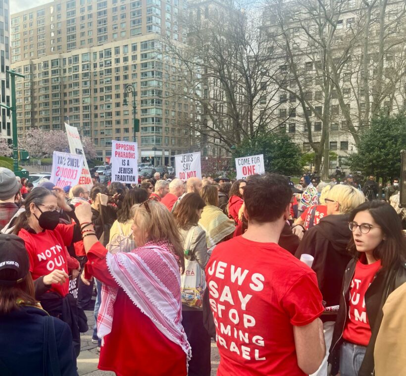 La sera di lunedì 14 aprile Jewish Voice for Peace-New York City ha organizzato un Seder[1] di liberazione davanti alla sede dell’ICE a Foley Square insieme a IfNotNow, Jews For Racial and Economic Justice (JFREJ), Rabbis for Ceasefire e Shoresh. Centinaia di ebrei e loro alleati hanno collegato l’antica storia della liberazione dalla schiavitù alle urgenti lotte di oggi contro la repressione politica, gli obiettivi anti-palestinesi e la violenza dello Stato.