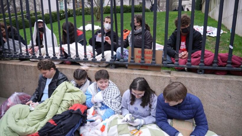 A New York, studenti ebrei si sono incatenati ai cancelli della Columbia University mercoledì per chiedere all’università di rivelare i nomi dei fiduciari e dei funzionari che hanno collaborato con le autorità federali per l’immigrazione (ICE) nell’arresto, il mese scorso, del leader della protesta studentesca Mahmoud Khalil.