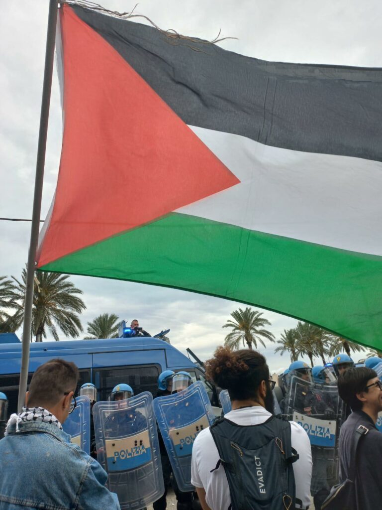 Dalle 16:00 del pomeriggio, il raduno in Piazza Costituzione, davanti al Bastione Saint Remy. Intorno alle 17:00 parte il corteo contro le esercitazioni militari e per la Palestina, organizzato dal “Comitato Sardo di Solidarietà con la Palestina”, con diverse centinaia di cittadini e cittadine, con bandiere della Palestina in primo piano. All’arrivo in piazza Matteotti, prima che iniziassero gli interventi, a un gruppo di manifestanti che ha cercato di raggiungere l’area del porto, zona interdetta per la presenza della Nave Trieste, si è opposta la polizia in assetto antisomossa e qualcuno si è beccato qualche manganellata.