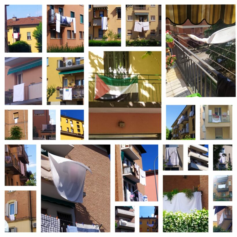 Anche a Bologna molte case hanno appeso alle finestre delle lenzuola bianche per protestare contro la violenza dell’esercito israeliano a Gaza. Un reportage fotografico dal Quartiere San Donato di Bologna realizzato da Renata Vitiello.
