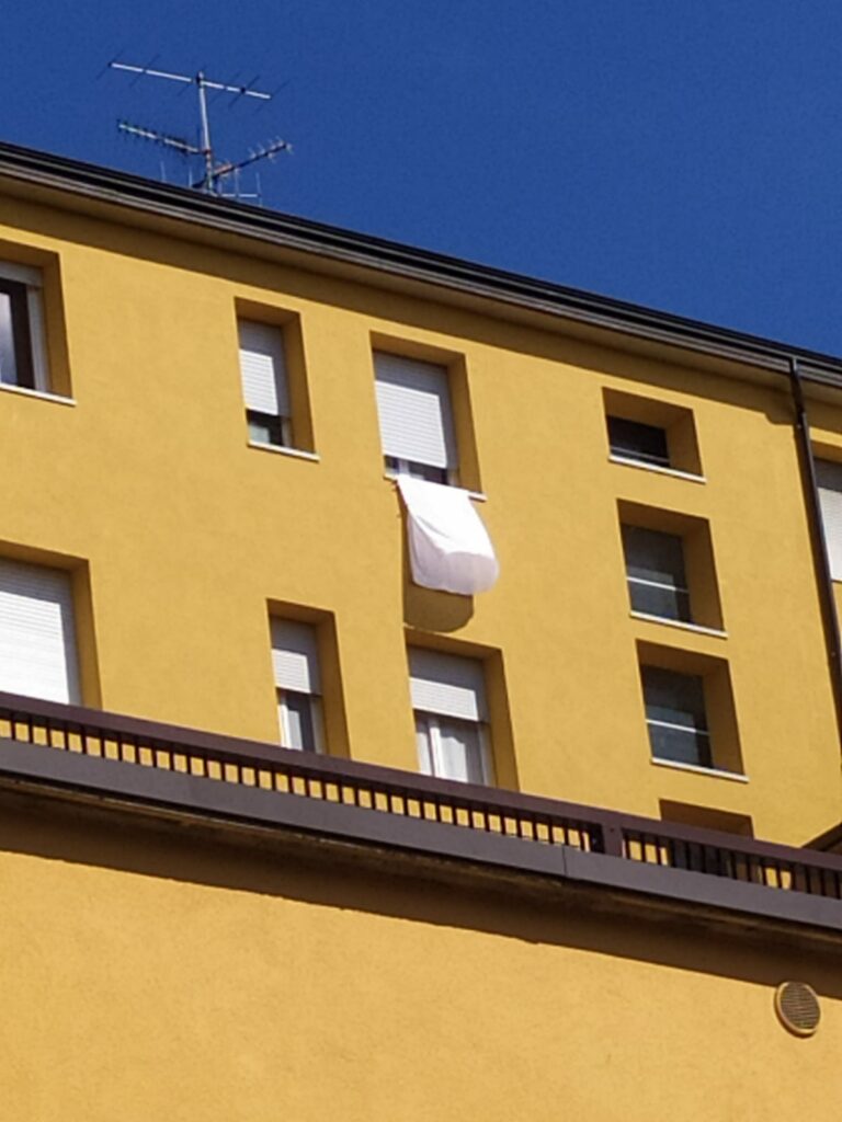 Anche a Bologna molte case hanno appeso alle finestre delle lenzuola bianche per protestare contro la violenza dell’esercito israeliano a Gaza. Un reportage fotografico dal Quartiere San Donato di Bologna realizzato da Renata Vitiello.