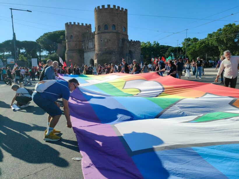 Un corteo imponente, unitario, pacifico nelle forme ma determinato nei contenuti ha attraversato Roma, dalla multietnica Piazza Vittorio alla storica Piazza di Porta San Paolo, luogo dove iniziò dopo l’8 settembre la Resistenza a Roma contro i nazifascisti. Negli anni Sessanta fu luogo di scontri tra forze dell’ordine e lavoratori a seguito della svolta a destra del quadro politico per il sostegno che il Movimento Sociale Italiano diede al governo del democristiano Tambroni. La svolta a destra venne fermata dando inizio alla stagione riformatrice dei governi di cento sinistra, ma il costo fu alto per le vittime causate dalla iniziale, brutale repressione.