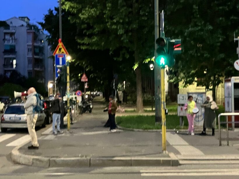 Così, nel suo piccolo, questa iniziativa ha avuto questo percorso. Diverse persone, tra le tante che fanno tutto quello che possono per fermare il massacro in Palestina, hanno risposto a questo appello e hanno deciso di non farlo da soli e da sole dalle finestre, ma di unirsi in strada o in uno slargo o in una piazza e fare tutto il rumore possibile, spiegando a chi passava o sentiva dalle finestre che lo si faceva contro il genocidio in corso. Vi proponiamo quindi qualche immagine arrivata da quella sera. Tra l’altro, pochi giorni dopo, lo stesso potente rumore venne replicato in apertura del corteo del sabato a Milano, con grande successo.