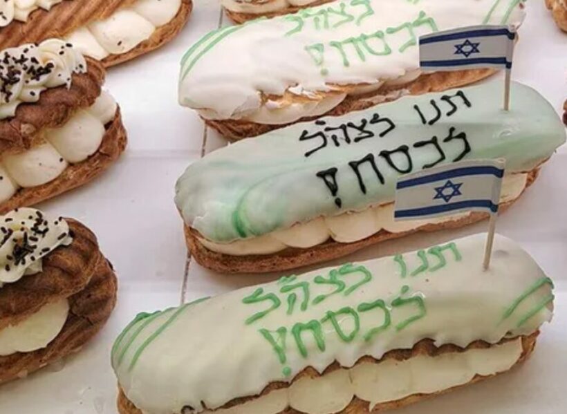 Le paste dolci farcite di crema e rivestite di glassae decorate con queste frasi sono state notate da una giornalista, Josie Glausiusz *, che nella notizia pubblicata sul quotidiano Haaretz il 6 maggio li ha descritti precisando che erano in vendita in una panetteria della sua città, Modi’in -Maccabim-Re’ut, nei giorni precedenti alla festa nazionale di Yom HaAtzmaut, cioè del Giorno dell’Indipendenza, celebrata alla ricorrenza della proclamazione dello stato d’Israele, che è avvenuta il 15 maggio 1948 in coincidenza con il ritiro delle truppe inglesi dalla Palestina e con l’inizio della nakba, ovvero della deportazione dei palestinesi dai territori occupati dai coloni israeliani.