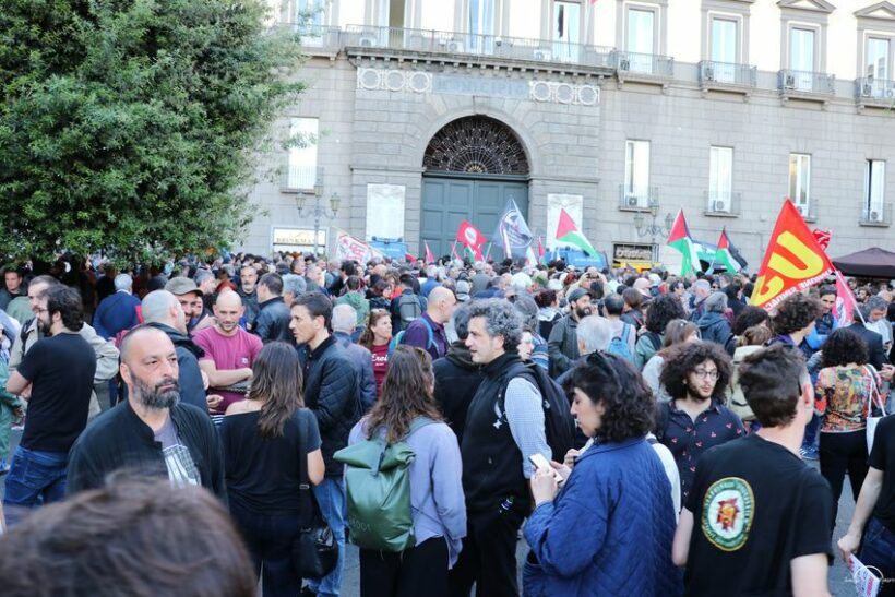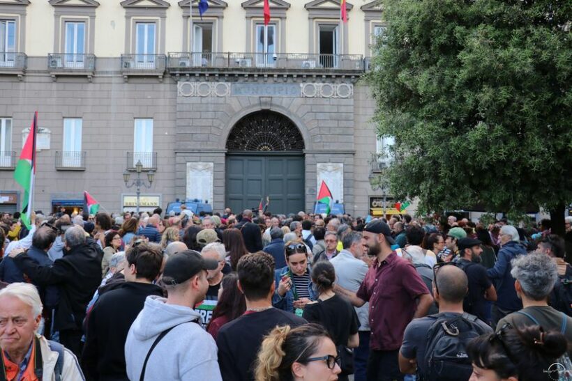Il 6 maggio oltre mille persone in Piazza Municipio per esprimere solidarietà con il popolo palestinese e sostegno a Nives Monda. Una Napoli che si scopre ancora una volta città di resistenza, evocando le Quattro Giornate.