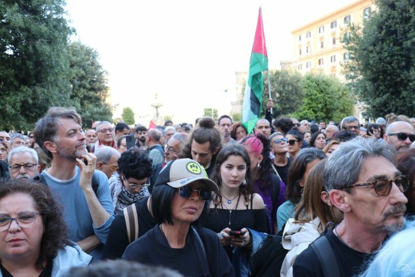 Il flash mob si è concluso con un lungo applauso. Non era di rito. Era un applauso sentito, per chi prende posizione, per chi rischia di essere travolto dall’odio per un gesto di coscienza. E per chi, come Nives Monda, ha scelto di non tacere. In mezzo alle bandiere palestinesi, ai canti, alle lacrime, spiccava un cartellone sorretto da due mani ferme: “Art.11: l’Italia ripudia la guerra”. Poco dopo, dalla folla, si è levato un coro spontaneo e potente: Bella ciao. Un canto di resistenza. Ieri come oggi.