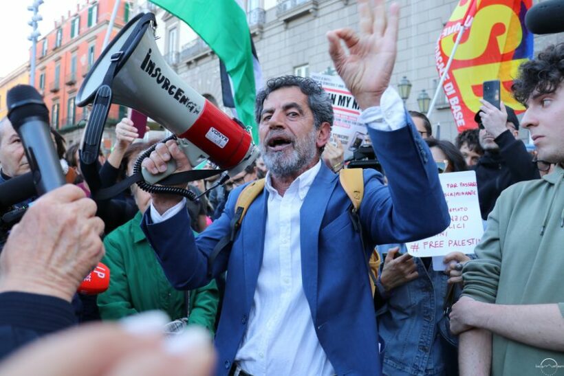 Con indignazione ha domandato: “Dove è finita l’umanità? Dove sono i valori della democrazia e della libertà? Dove sono i valori occidentali del diritto alla vita?” E ha denunciato: “Sotto i nostri occhi si compie un genocidio da due anni. E siamo tutti complici con la nostra indifferenza.” Ha chiesto con forza il riconoscimento dello Stato di Palestina da parte dell’Italia e della comunità internazionale. Poi ha evocato la storia della città che lo ospita: “Napoli è la città delle Quattro Giornate, che ha mandato a calci nel culo i nazifascisti!” Il suo appello finale è risuonato come un’esortazione urgente: