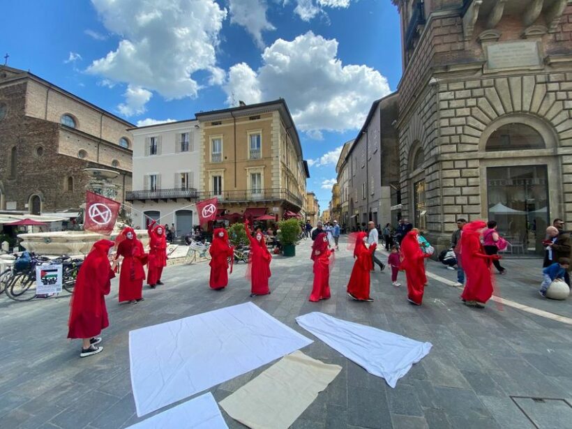 La zona di Faenza è stata una delle più colpite dai recenti eventi climatici estremi, con ben tre alluvioni nell’arco di soli 16 mesi che hanno messo a dura prova gli abitanti e l’economia del luogo, un esempio evidente, se mai ce ne fosse ancora bisogno, di come l’aggravarsi della crisi climatica sta impattando su territori e popolazioni dell’area mediterranea. “Le preoccupazioni della cittadinanza si scontrano tuttavia con la burocrazia e l’inattività dei governi centrali, tanto che la giunta comunale ha annunciato a settembre di voler procedere alla messa in sicurezza dei fiumi Lamone e Marzeno senza attendere le autorizzazioni ufficiali, mentre i timori della popolazione aumentano ad ogni pioggia”, spiega Extinction Rebellion.