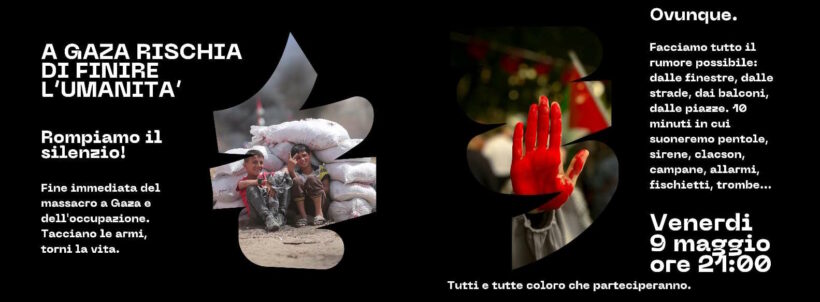 Dopo l’iniziativa di martedì sera di spegnere le luci, proponiamo, con le medesime motivazioni, di fare il più rumore possibile, venerdì 9 maggio alle ore 21. Dalle finestre, dalle strade, dai balconi, dalle piazze. 10 minuti in cui suoneremo pentole, sirene, clacson, campane, allarmi, fischietti, trombe….