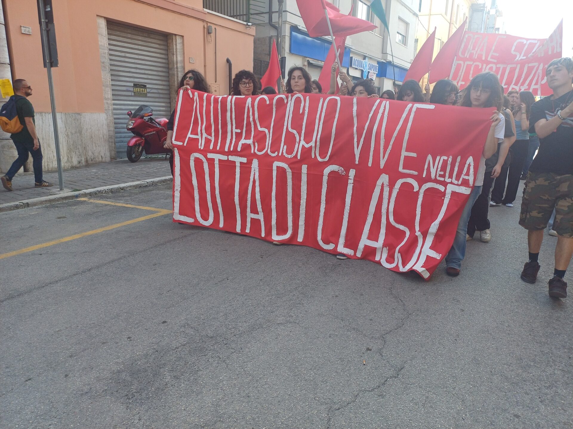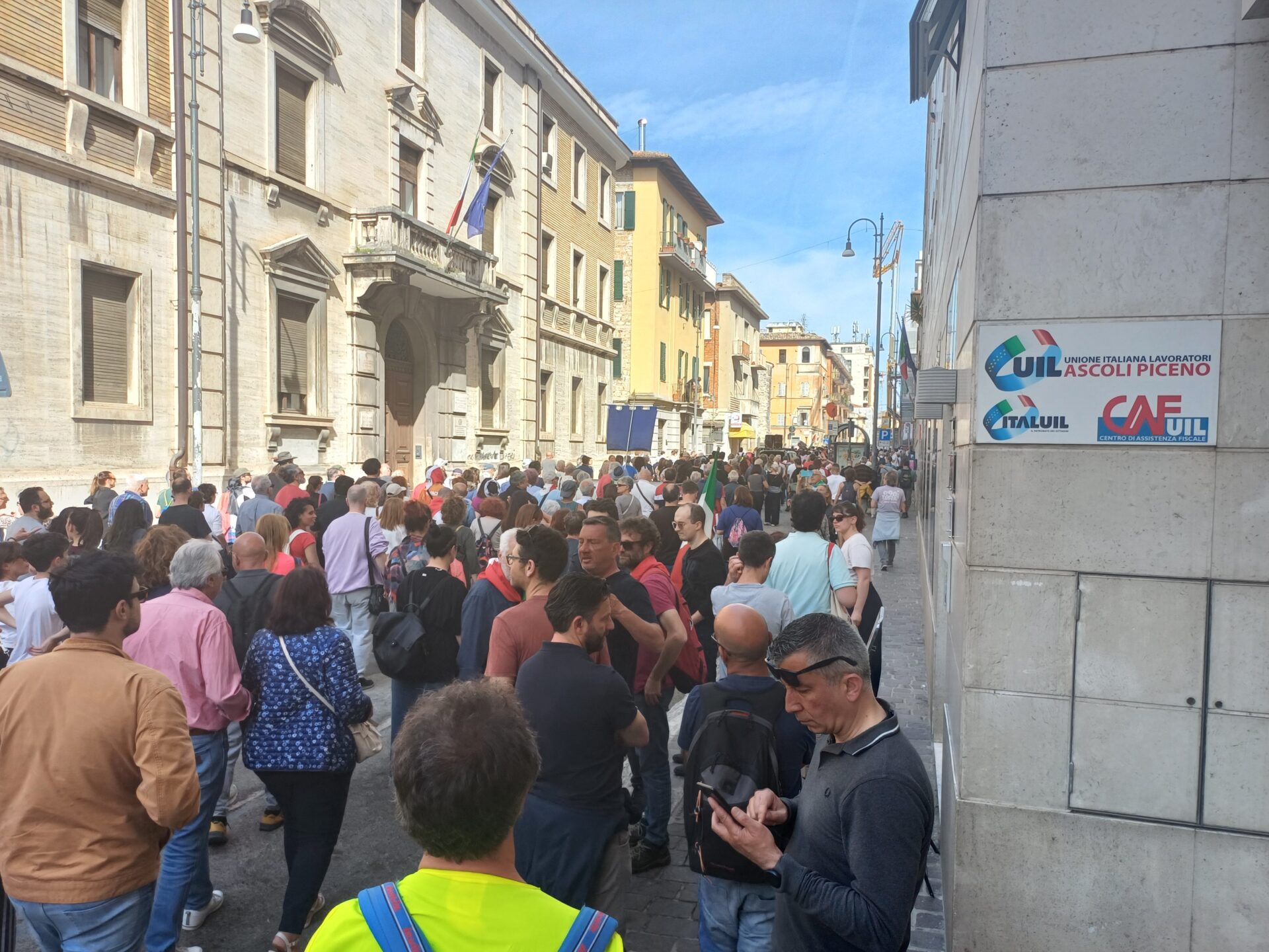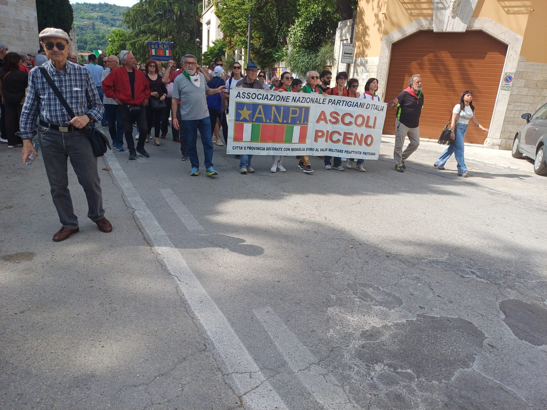 Così per la prima volta in ottant’anni Ascoli ha visto sfilare per alcune ore tanta gente proveniente da diverse parti della regione e dal territorio provinciale. Sezioni dell’Anpi, a partire da quella ascolana, delegazioni della Cgil, striscioni della Filcams e della Flc, collettivi studenteschi, ma soprattutto tanta gente e numerosissimi giovani, con bandiere rosse, palestinesi e della pace, hanno trasformato il volto del capoluogo di provincia.