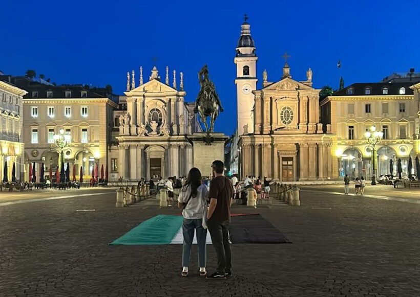Si chiamano Andrea, Jeuray, Marco, Susanna, Vittoria e se volete cercarli on line basta digitare “i ragazzi di Piazza Castello di Torino” perché è lì che si sono piazzati da giorni, precisamente da lunedì 19 maggio, con le loro colorate tendine di nylon: per denunciare con i loro corpi, la loro presenza, i loro libri, suoni, brani di poesia, letture, pensieri, parole che volentieri scambiano con chiunque li avvicini, la totale inaccettabilità di ciò che sta succedendo da troppo tempo a Gaza.