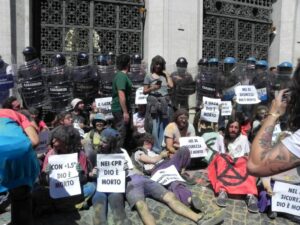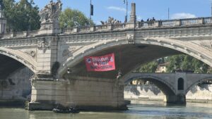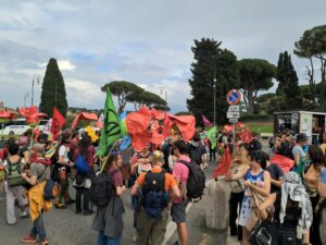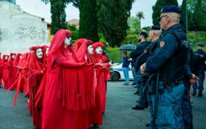 Lunedì 28 viene occupato l’ingresso del Palazzo dell’Aeronautica Militare, una delle sedi del Ministero della Difesa, e martedì 29 è il turno della sede produttiva di Leonardo spa, sulla Tiburtina. Con un’energia che sembra inesauribile nonostante i vari sgomberi e i pomeriggi passati in questura, Extinction Rebellion trova il modo di arrivare anche sotto il Ministero della Giustizia per un’ultima grande azione dimostrativa il 30 aprile, prima di unirsi, giovedì 1 Maggio, al grande corteo organizzato dai sindacati per celebrare la festa dei lavoratori.