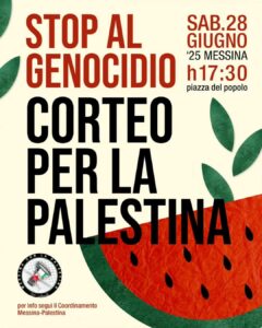 un corteo cittadino il 28 giugno 2025 a Messina, per dire basta al genocidio del popolo palestinese.