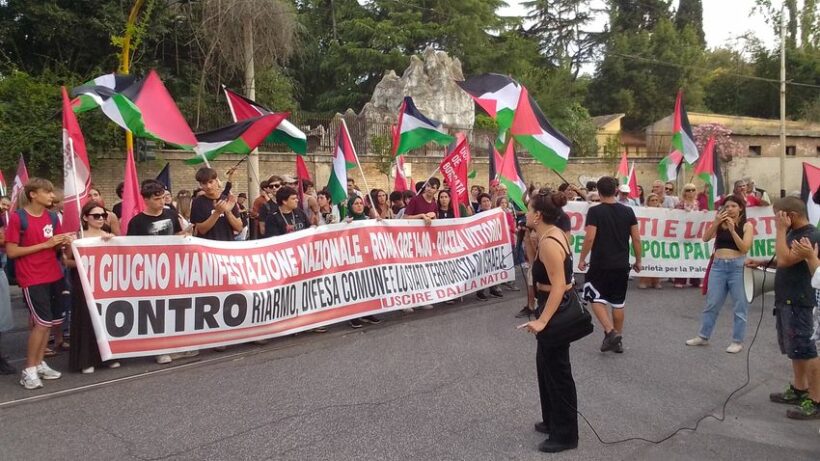 Davanti alla Galleria Nazionale di Arte Moderna a Valle Giulia, nel quartiere Parioli, si sono ritrovate alcune centinaia di militanti della Rete dei Comunisti, Unione Sindacale di Base, Potere al Popolo, Organizzazione Studentesca di Opposizione, Cambiare Rotta e Movimento degli Studenti Palestinesi per denunciare quella che senza al un dubbio è una guerra di aggressione ad uno Stato Sovrano e alla sua popolazione civile attraverso bombardamenti nei quartieri residenziali e alla televisione di stato che hanno comportato centinaia di vittime civili innocenti.