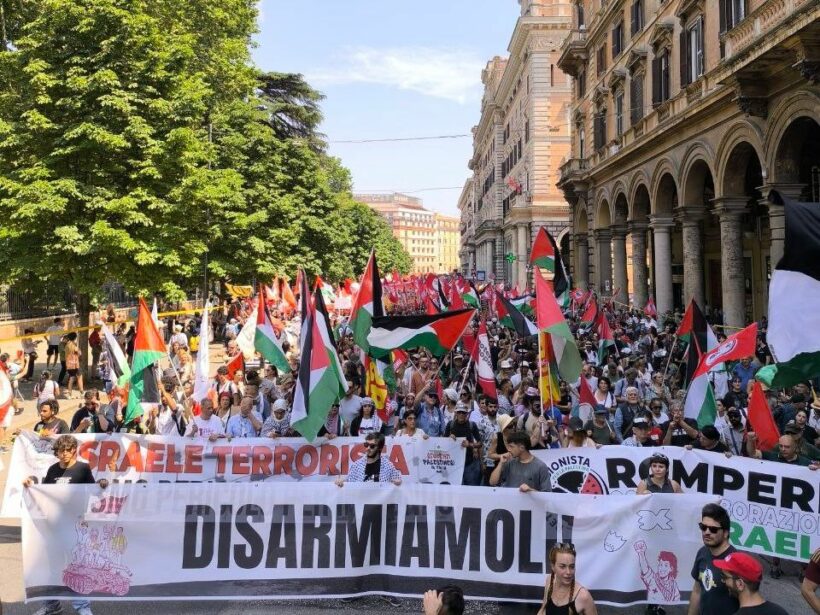 Se dovessimo utilizzare un’immagine per descrivere la piazza di ieri, 21 giugno, partita da piazza Vittorio per arrivare ai Fori Imperiali e organizzata dal coordinamento Disarmiamoli (composto, tra le altre moltissime realtà, da Potere al Popolo, Unione Sindacale di Base, Collettivi Autorganizzati Universitari e Cambiare Rotta) useremmo quella di un mare in tempesta.