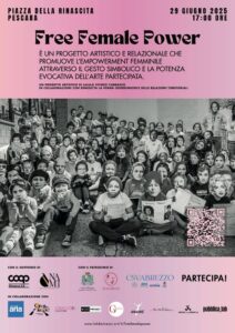 Domenica 29 giugno 2025, alle ore 17:00, Piazza della Rinascita a Pescara ospiterà Free Female Power, un’azione performativa partecipata nata per promuovere l’empowerment femminile attraverso l’arte relazionale. L’evento – ideato dall’artista italo-colombiana Lalula Vivenzi e promosso da Pubblica_Lab ETS – vedrà la presenza di centinaia di persone riunite in un’azione collettiva, simbolica e trasformativa.