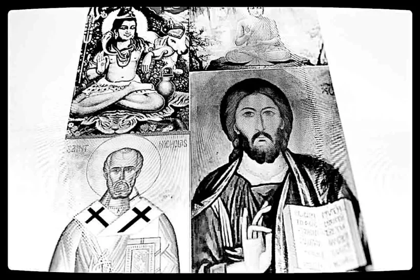 Come prova dell’insegnamento yogico di Gesù ci sarebbero numerose raffigurazioni e, se osserviamo l’immagine al centro, notiamo che Shiva, Buddha, San Nicola e Gesù sembrano fare tutti gesti simili. Ad un occhio non allenato, questa potrebbe essere solo una coincidenza, ma ad un ulteriore esame sembra che ogni “maestro asceso” sembri usare un mudra yogico. Nella pratica dello yoga, i mudra sono fondamentalmente di due tipi: toccare la punta di varie dita con il pollice o premere la prima articolazione falangea con il pollice. A seconda di quale dito viene toccato o premuto, gli effetti sul corpo variano.