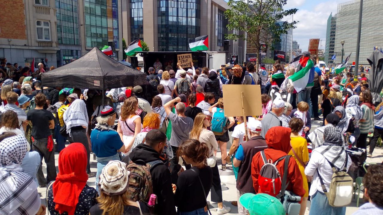 Dopo l’Egitto la Global March to Gaza ha deciso di partecipare alla settimana di iniziative per la Palestina e contro il genocidio a Gaza che si stanno tenendo a Bruxelles nei luoghi simboli del potere dell’Unione Europea: la Borsa il Parlamento e le commissioni.