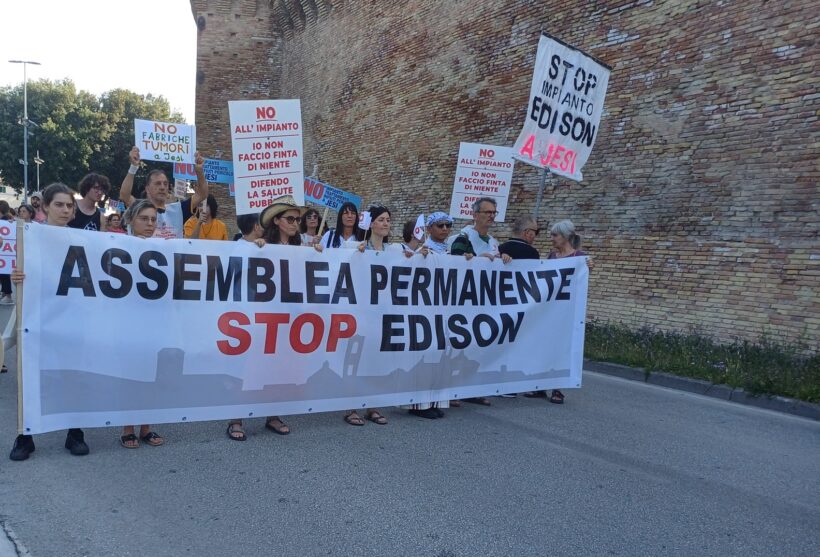 Dopo un anno di mobilitazione con petizioni, assemblee, sit-in e quant’altro, dopo che una consultazione popolare di pochi giorni fa alla quale hanno partecipato 3.439 persone, di cui 3.309, il 96%, ha votato no, la lotta contro la realizzazione a Jesi di un mega impianto di smaltimento dei rifiuti della Edison ha vissuto ieri pomeriggio un altro grande momento. Una folla enorme, circa 5.000 persone, ha attraversato le principali vie cittadine in un corteo indetto dall’assemblea permanente Stop Edison per ribadire che questo nuovo mostro, in un’area già sottoposta ad un inquinamento costante da anni, a partire dalla grande raffineria Api di Falconara, non si deve edificare.