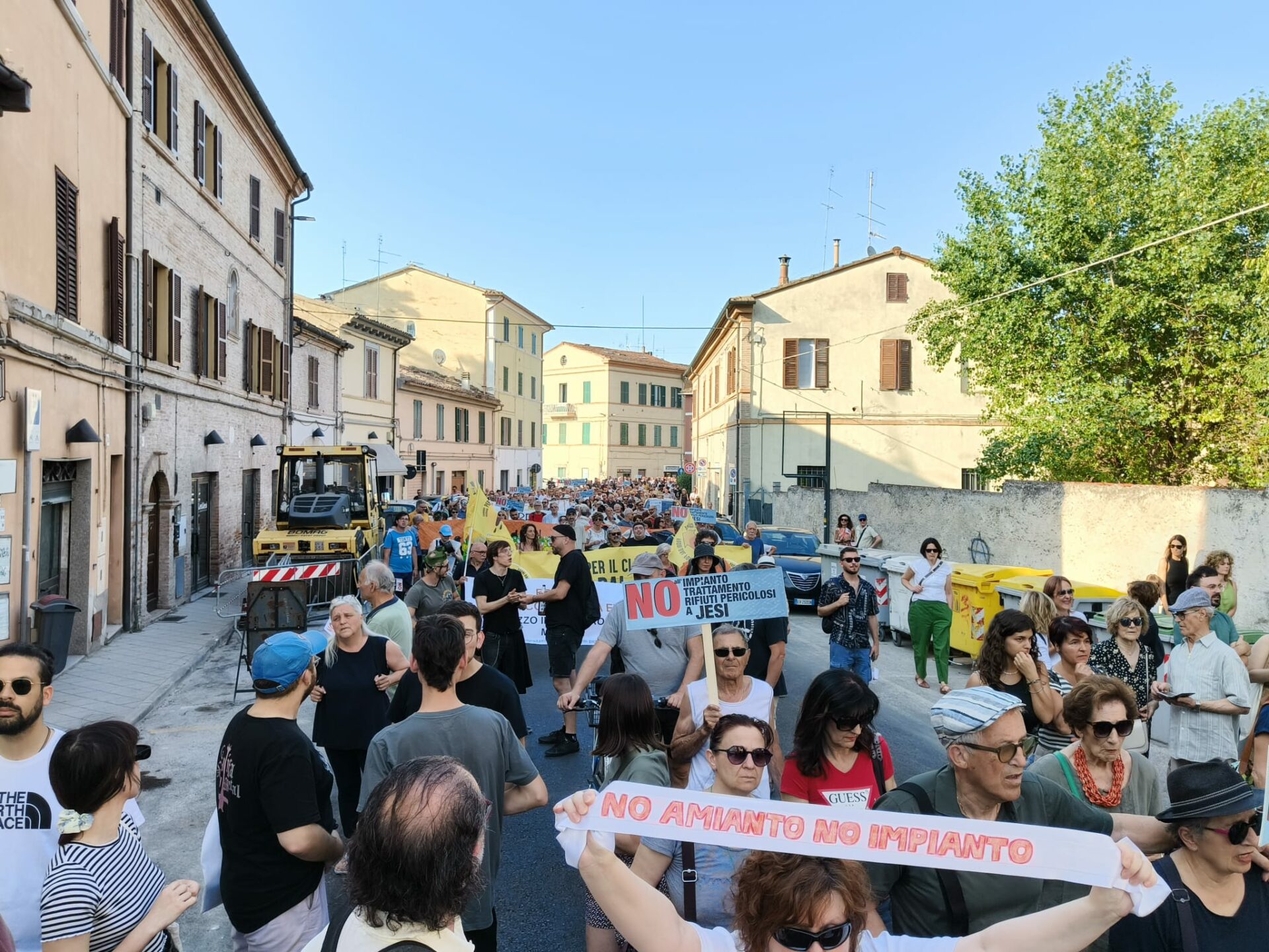 Dopo un anno di mobilitazione con petizioni, assemblee, sit-in e quant’altro, dopo che una consultazione popolare di pochi giorni fa alla quale hanno partecipato 3.439 persone, di cui 3.309, il 96%, ha votato no, la lotta contro la realizzazione a Jesi di un mega impianto di smaltimento dei rifiuti della Edison ha vissuto ieri pomeriggio un altro grande momento. Una folla enorme, circa 5.000 persone, ha attraversato le principali vie cittadine in un corteo indetto dall’assemblea permanente Stop Edison per ribadire che questo nuovo mostro, in un’area già sottoposta ad un inquinamento costante da anni, a partire dalla grande raffineria Api di Falconara, non si deve edificare.