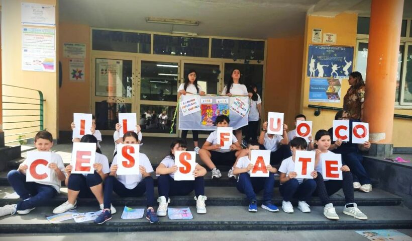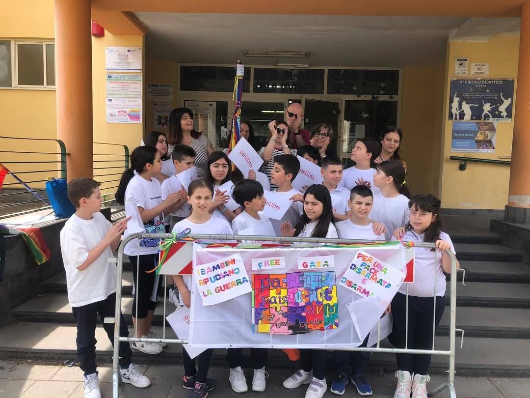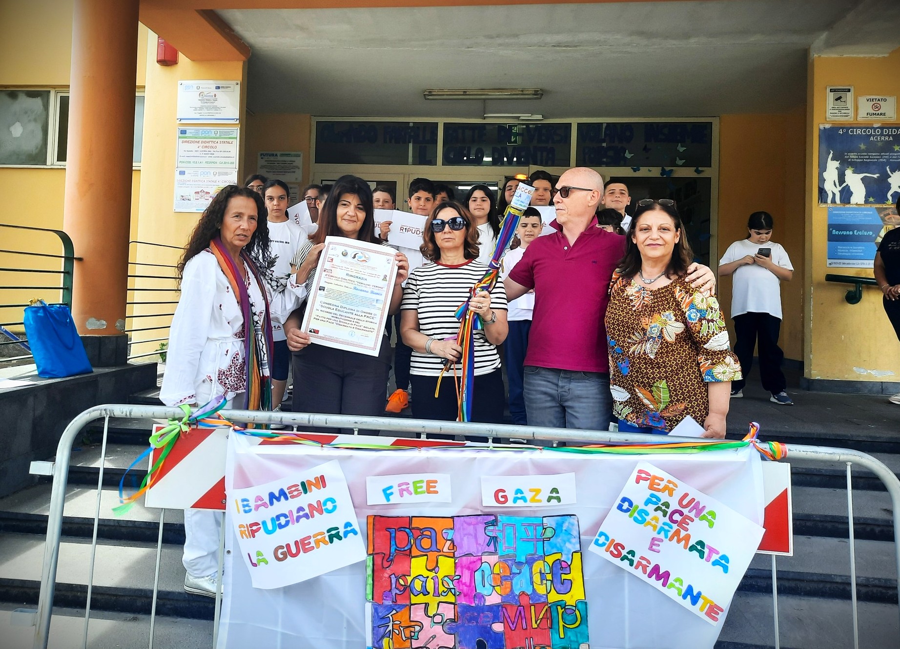 Il IV Circolo di Acerra “Verolino – Verone” Scuola “Ambasciatrice di Pace” diretta da Rosanna Bianco, da anni distintasi per il forte impegno per la pace e la difesa dei diritti di ogni bambino, a fine anno scolastico non ha voluto far mancare il proprio sostegno ai bambini di Gaza. E’ di pochi giorni fa la mozione approvata in Collegio Docenti per la difesa dei diritti umani e per una pace “disarmata e disarmante”, con la quale la scuola ha espresso ferma condanna verso ogni forma di guerra, violenza indiscriminata contro i civili e violazione dei diritti fondamentali, con particolare riferimento alla crisi umanitaria in atto nella Striscia di Gaza, che sta coinvolgendo un numero impressionante di minori.