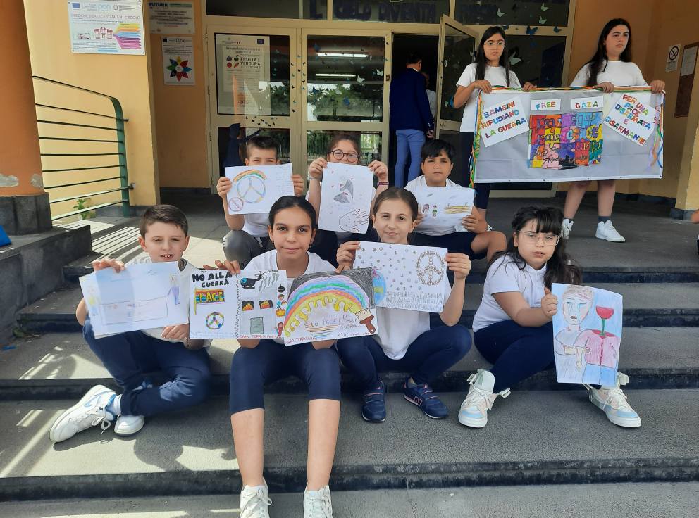 Gli alunni hanno esposto i loro disegni sul tema: R1PUD1A la guerra, adottando la campagna di Emergency, l’organizzazione umanitaria fondata da Gino Strada, e per una “Pace disarmata e disarmante”, attraverso i quali hanno voluto rappresentare ed esprimere il loro stato d’animo per la morte di tanti loro coetanei innocenti. “Spero che la guerra di Gaza finisca presto e che tutti i bambini si salveranno da questo orribile massacro, perché non lo meritano e devono vivere la loro vita in pace. I bambini hanno diritto alla vita. Free Gaza!”.