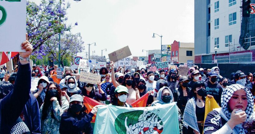 A cinque giorni dall’inizio delle proteste contro le politiche migratorie, la situazione a Los Angeles sembra infiammarsi ogni ora che passa. Ieri, martedì 10 giugno, la sindaca Karen Bass ha introdotto il coprifuoco nel centro cittadino, dopo che il presidente degli Stati Uniti Donald Trump ha inviato ulteriori 2 mila membri della Guardia Nazionale nella città californiana, insieme a 700 marines, portando così a 4.700 il numero di militari che ora presidiano la città – teoricamente, col solo compito di proteggere gli uffici governativi, non di svolgere azioni di polizia. Questi dovrebbero contribuire a sedare le rivolte esplose nella seconda città più popolosa degli Stati Uniti contro le politiche migratorie dell’esecutivo, che hanno portato all’arresto di centinaia di persone teoricamente presenti irregolarmente sul territorio statunitense – tra queste, molti bambini, anziani e donne incinte. D’altronde, la promessa di deportare centinaia di migranti era una parte centrale della campagna elettorale di Trump. La politica muscolare del presidente, che non sta risparmiando nessun ambito – dalla repressione all’interno degli atenei all’atteggiamento in materia di politica estera, passando per le politiche economiche e la soppressione dei diritti civili – trova qui una dimostrazione plastica di cosa il potere possa arrivare a fare contro i suoi stessi cittadini per dimostrare la propria forza.