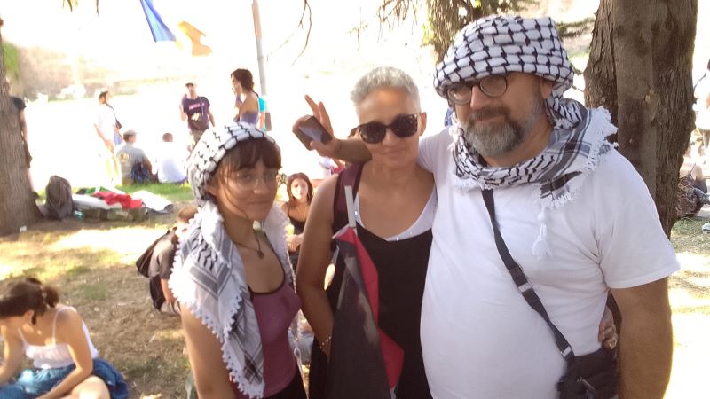 La parola passa poi alla giovane italo-Palestinese Maya Issa, “la figlia che non ho e che avrei voluto avere” la chiama Ovadia. Maya, del Movimento dei Giovani Studenti Palestinesi, denuncia le complicità dell’Unione Europea nel Genocidio. Ricorda l’ultimo episodio e cioè l’aggressione di Israele e Stati Uniti non soltanto alla Repubblica Islamica ma all’intero popolo iraniano.