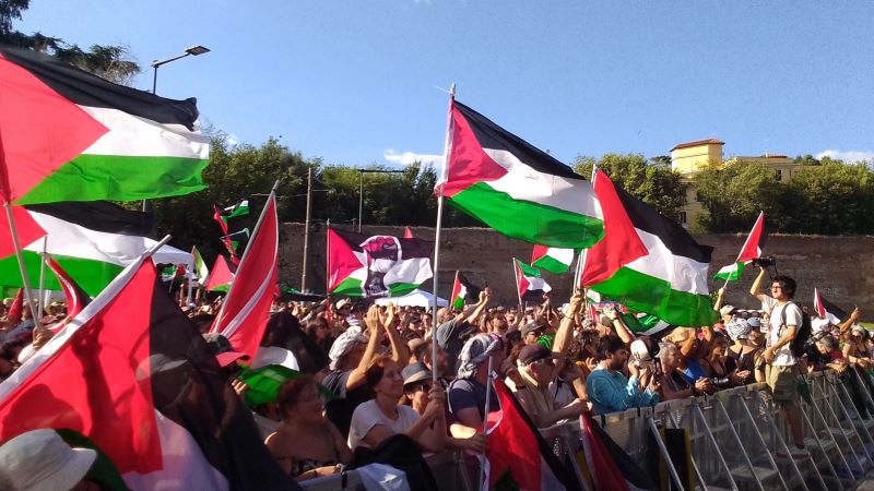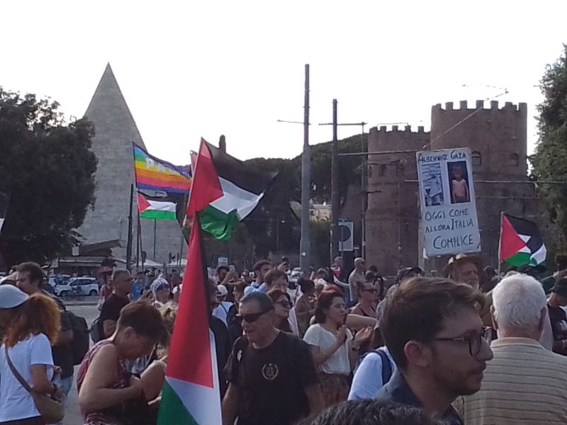 Italiani ma anche immigrati provenienti soprattutto dal Nordafrica e dal Vicino Oriente a sostegno della causa del Popolo Palestinese e per condannare per l’ennesima volta il Genocidio in diretta, che prosegue con la piena complicità degli Stati Uniti d’America, delle Istituzioni dell’Unione Europea e dalla stragrande maggioranza dei Paesi del cosiddetto Occidente.