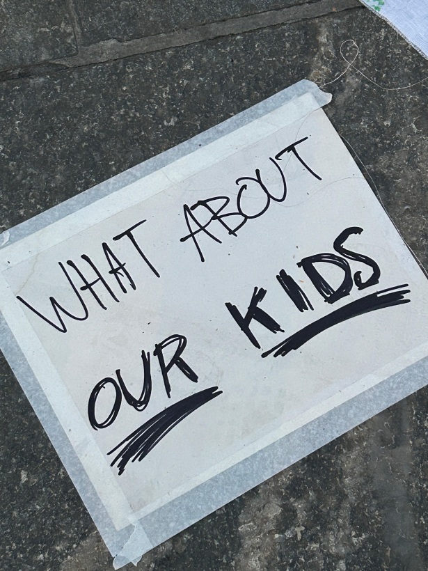 Non è un problema stare qui da 20 giorni[1], abbiamo cibo, abbiamo acqua, caldo, freddo, pur dormendo in piazza rimaniamo figlie di un paese privilegiato. A Gaza non riuscirebbero nemmeno a prendere in mano una forchetta, in Palestina il popolo è stato seccato, i corpi morti lasciati nelle piazze.