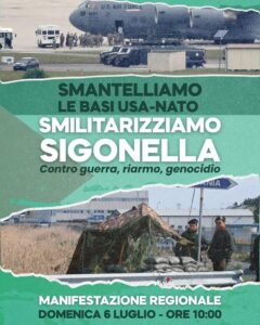 Sigonella, manifestazione Stop Riarmo europeo e per dire No al genocidio palestinese