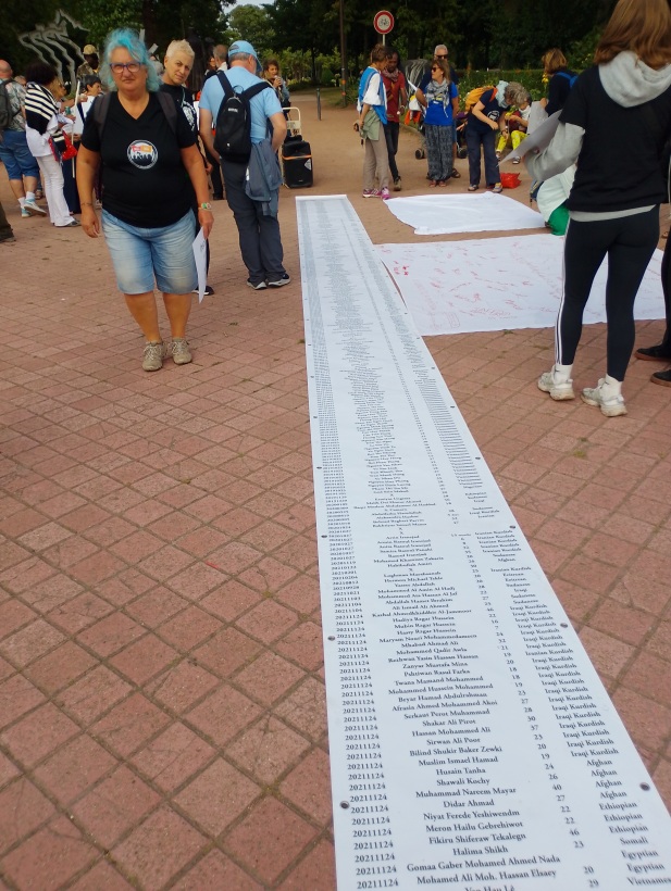 Durante la commemorazione hanno parlato molti migranti, in particolare Ibrahim, un sans papier ricercatore all’università Ante Diop del Senegal, che ha ricordato le colpe di noi bianchi rispetto allo sfruttamento e annichilimento dell’ Africa e con molta dignità e rabbia ha ricordato a tutti noi l’ intrinseco razzismo del sistema d’ apartheid con cui l’Unione Europea ha impedito a quasi tutto il mondo di potersi muoversi liberamente. Inoltre, ha ricordato anche il sacrificio degli africani subsahariani per aiutare la Francia a liberarsi dal nazifascismo e ha concluso il suo intervento dicendo che la Francia appartiene anche agli africani e non solo ai francesi.