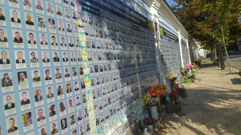 Ovviamente dopo l’aggressione della Federazione Russa (giustificabile quanto si vuole, ma in violazione della legalità internazionale) il numero dei morti aumenta in maniera esponenziale. Il muro, lungo oltre cento metri, ormai è finito e le nuove foto non sono più sistemate ordinatamente, ma alla rinfusa.