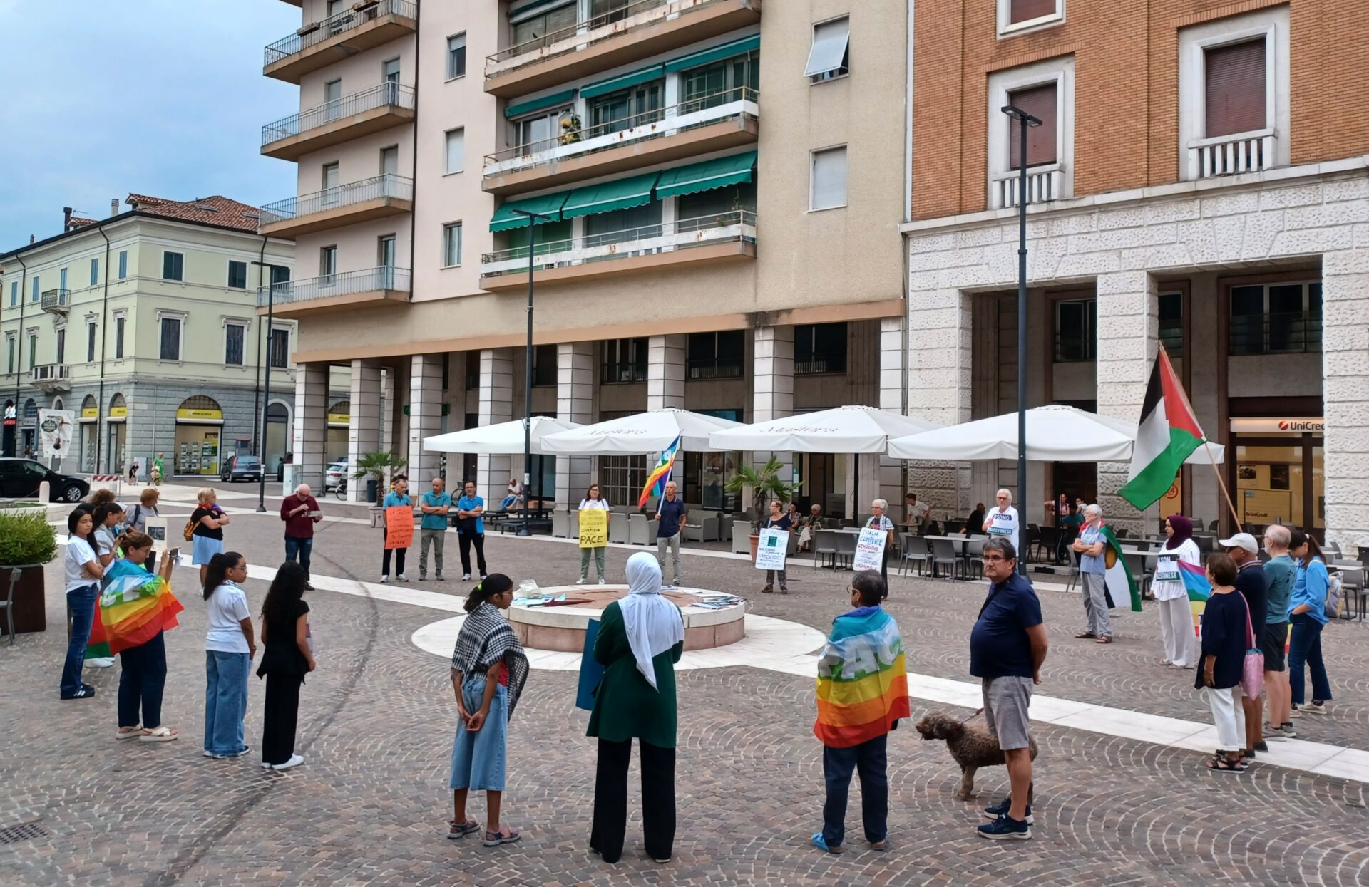 Sull’esempio di Milano, con il sostegno a distanza pronto e attivo di chi manifesta da dieci settimane, alle 18.30 i volontari di molte associazioni scendono in piazza. Con le bandiere palestinesi e quelle arcobaleno della pace, con cartelloni colorati grandi e piccoli, con poesie e testimonianze lette al megafono.