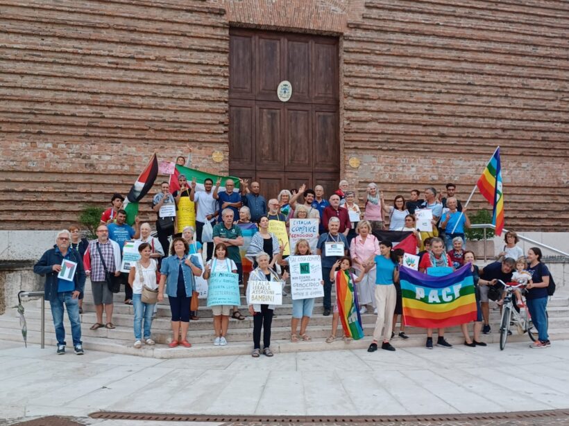 Tutto è iniziato il 2 giugno, Festa della Repubblica. Presso la Comunità Emmaus di Aselogna di Cerea (Verona). Dopo settimane di preparazione e di messaggi, siamo riusciti a radunare e a far conoscere tra loro una ventina di associazioni di volontariato del territorio. Abbiamo quindi organizzato il presidio per Gaza per quattro sabati di fila, dopo parecchie difficoltà avute con il Comune per le varie autorizzazioni.
