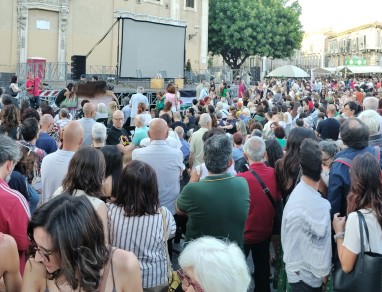 Non solo la piazza si è riconosciuta in Francesca Albanese e nelle sue parole, ma il giovane sindaco di Aci Sant’Antonio, Quintino Rocca, dal palco, ha annunciato che il comune etneo darà le chiavi della Città alla relatrice dell’ONU. Un gesto importante, che segue la scelta di diversi comuni del catanese, per ultimo Acireale, che hanno riconosciuto lo Stato di Palestina.