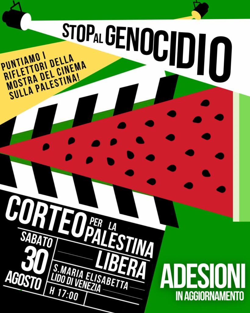 alcune associazioni, gruppi informali e politici del nord-est hanno organizzato una manifestazione a sostegno della causa palestinese il giorno 30 agosto alle ore 17:00, a Lido di Venezia in occasione della Mostra del Cinema.