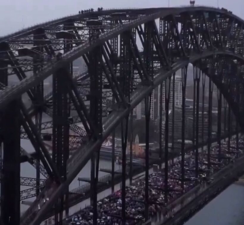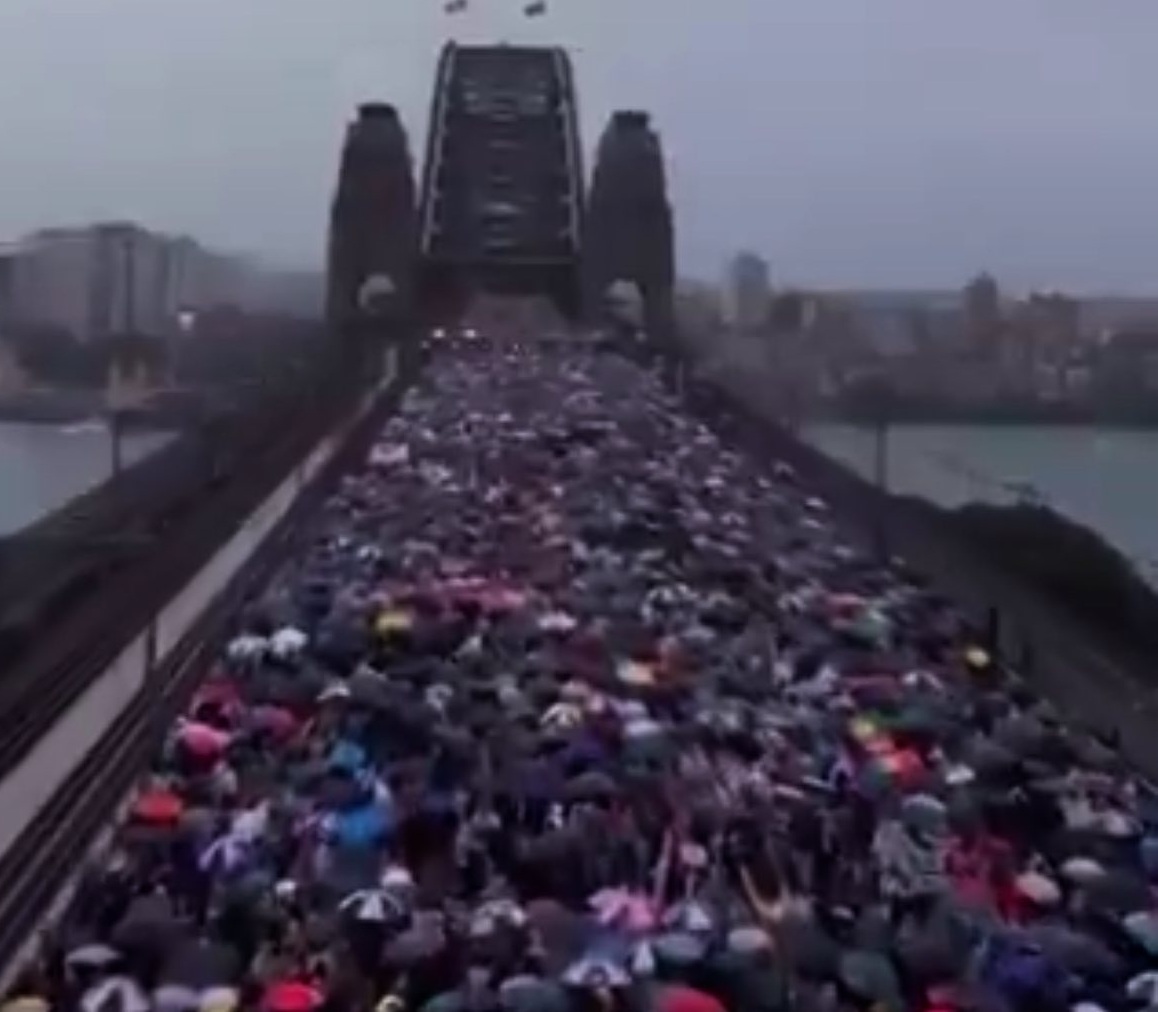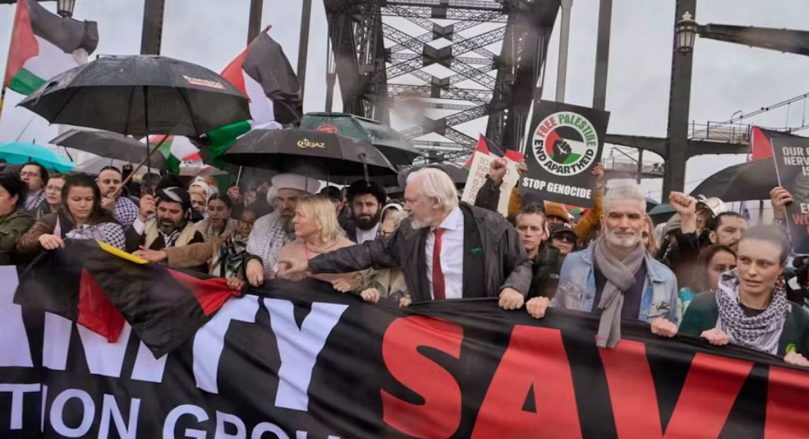 Circa 100.000 persone (300.000 secondo gli organizzatori, gli attivisti di Palestine Action Group) hanno attraversato ieri il Sydney Harbour Bridge sotto una pioggia battente, in una delle più grandi manifestazioni a sostegno della Palestina avvenute in Australia. La polizia aveva cercato di vietarla, ma la Corte Suprema del Galles del Sud all’ultimo momento l’ha autorizzata.
