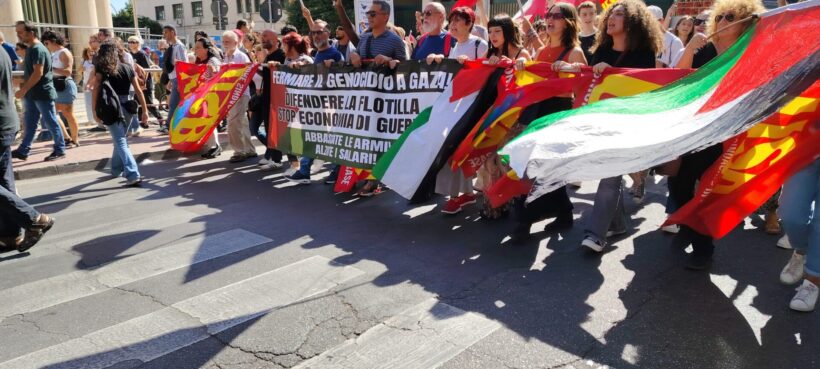 E la nostra efficacia può misurarsi soltanto nella capacità di mobilitare i lavoratori e non solo per inceppare, come abbiamo fatto oggi, la produzione di beni e servizi, per costringere governi e padronato a rivedere gli accordi commerciali con Israele, a bloccare il traffico di armi, a stabilire sanzioni.