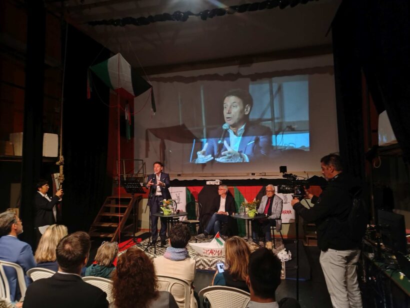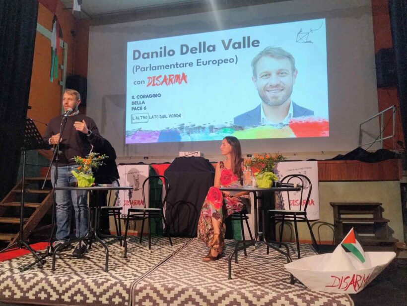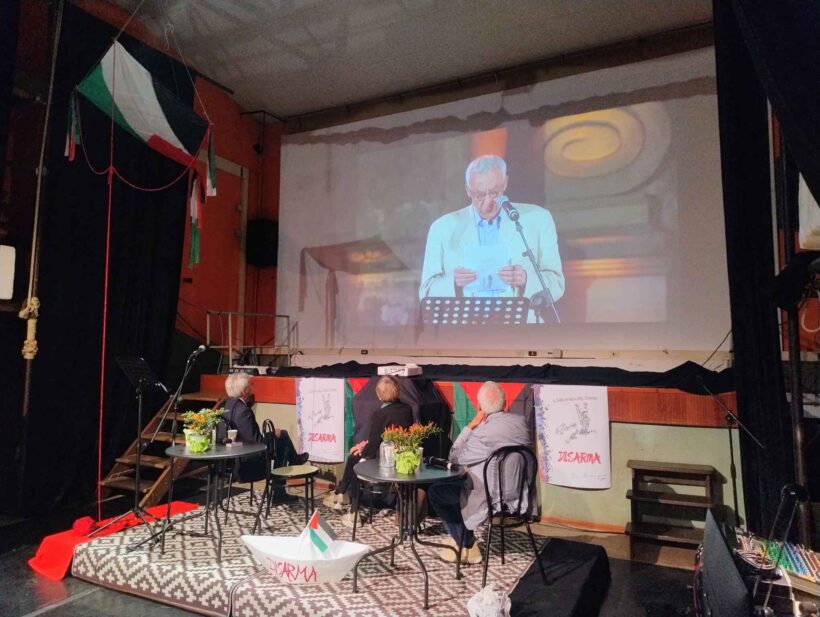 Ed è con questo spirito che dobbiamo rivolgerci al mondo intero, riportare all’azione chi non si sente rappresentato, chi non ci crede e chi si sente inerme. La Freedom Sumud Flotilla è un esempio di ciò che possiamo fare. Noi dobbiamo avere il coraggio di prendere sulle nostre spalle la responsabilità di rappresentare l’altra parte dell’Occidente, del nostro mondo, perché noi ci siamo, non è quella roba lì il nostro mondo, l’Occidente che resta umano e che forse finalmente lo diventa realmente, senza più finzioni. E le manifestazioni che ci sono state in questo giorno a sostegno della Flotilla, tutto il movimento che si è venuto a creare, non possiamo non mandare un pensiero, un abbraccio grandissimo ad Ali Rashid che avrebbe dovuto essere qui con noi oggi ed al quale noi dedichiamo questa bellissima iniziativa.