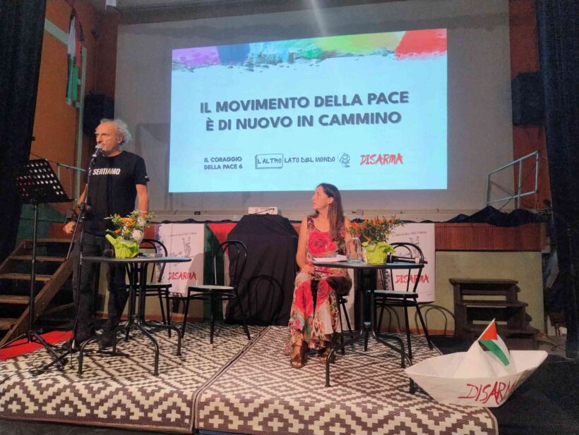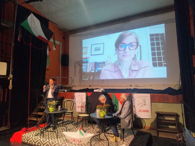 In questo processo il movimento per la pace è il vero protagonista, perché da questo dipende tutto il resto, è quello che diceva Lorenzo Falchi, perché senza la pace noi non possiamo affrontare la questione climatica, non solo per l’inquinamento della guerra, ma perché dobbiamo cambiare, dobbiamo ripensare il sistema di redistribuzione globale delle risorse e il sistema di produzione che non sia predatorio per affrontare il disastro ambientale, perché siamo in un mondo multipolare e gli Stati Uniti se ne devono fare una ragione di questo. Allora vanno affrontate le sfide di uno scenario globale e in questi quattro giorni io vi invito a rimanere perché avremo veramente tanti ospiti, tante relatrici e relatori che ci aiuteranno a capire che cos’è l’altra parte del mondo di cui noi sappiamo così poco e le discriminazioni tra i generi. Anche questo è il frutto del sistema patriarcale maschile della violenza e della brutalità e solo il sistema di guerra le governa e noi lo dobbiamo scardinare. E il Mediterraneo, fatemi fare ancora un passaggio su questo, non può essere un cimitero, perché le frontiere non possono essere passate solo dalle merci e dai capitali, mentre gli uomini, le donne e i bambini vengono respinti come pezzi di carne avariata.