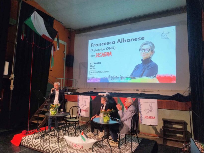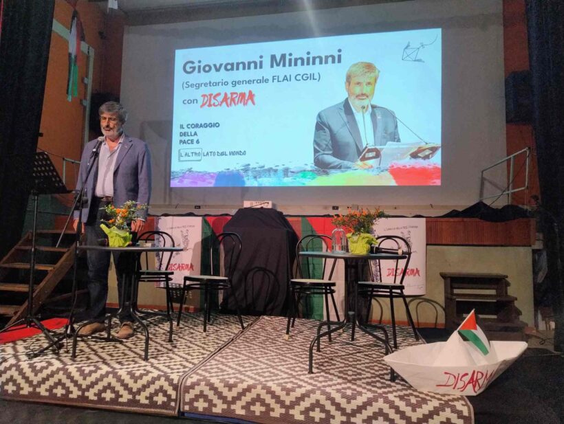 Voglio partire dal rapporto di Francesca Albanese, che avremo stasera ospite, con grande onore la ospitiamo all’apertura dei nostri lavori, che davvero è una coraggiosa, coraggiosissima della pace, che deve sentire forte il nostro sostegno, perché oggi ciò che lei ha fatto, questo rapporto, ha davvero, più di tutti gli altri, stracciato un velo dall’economia dell’occupazione all’economia del genocidio: vi invito a leggerlo perché tra l’altro è documentato, è pragmatico, è reale, è una cosa veramente di azione ed è stato deflagrante. Abbiamo visto che cosa le è accaduto, perché non c’è più la possibilità di essere tiepidi, ignavi, di parlare solo di rapporti non direttamente legati alle politiche di genocidio di Israele: ogni rapporto con Israele oggi è un rapporto di genocidio e lei ce lo ha svelato e il nostro sistema accetta, ammette e permette che si compie il genocidio e che la guerra diventi il nostro orizzonte futuro. Francesca Albanese parla della politica di occupazione e della politica coloniale: io ritengo che in realtà questo davvero disveli il fatto che è la politica del sistema capitalistico occidentale alla sua massima potenza, è ciò che le nostre entità aziendali e i nostri governi hanno messo in atto nei decenni nei confronti del resto del mondo, ma l’hanno fatto anche nei confronti nostri, della loro popolazione interna, aumentando la disuguaglianza attraverso lo sfruttamento estremo del lavoro e l’impoverimento delle masse.