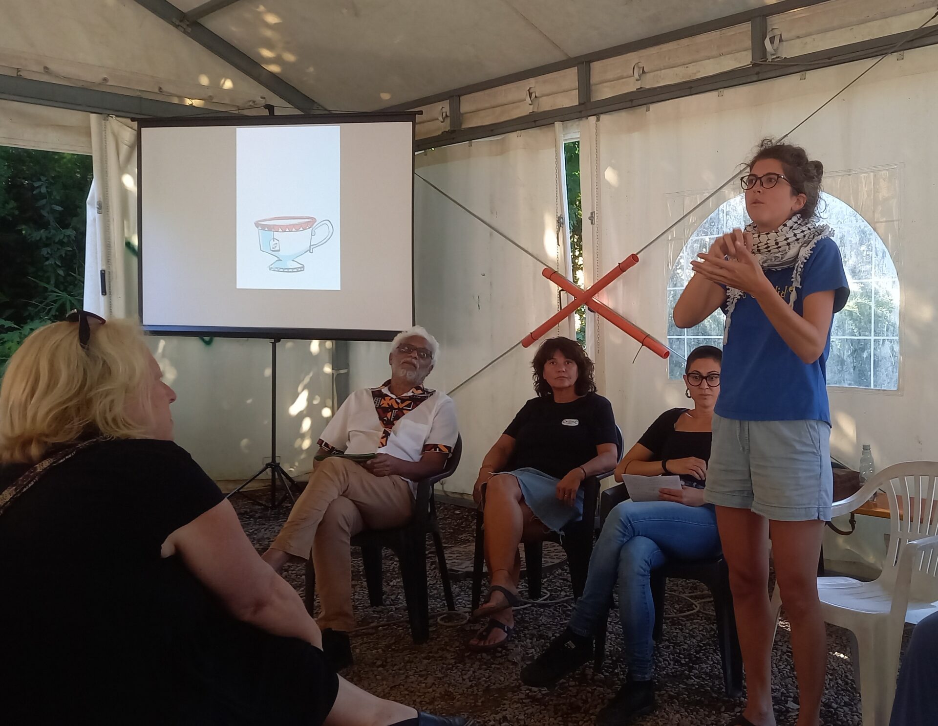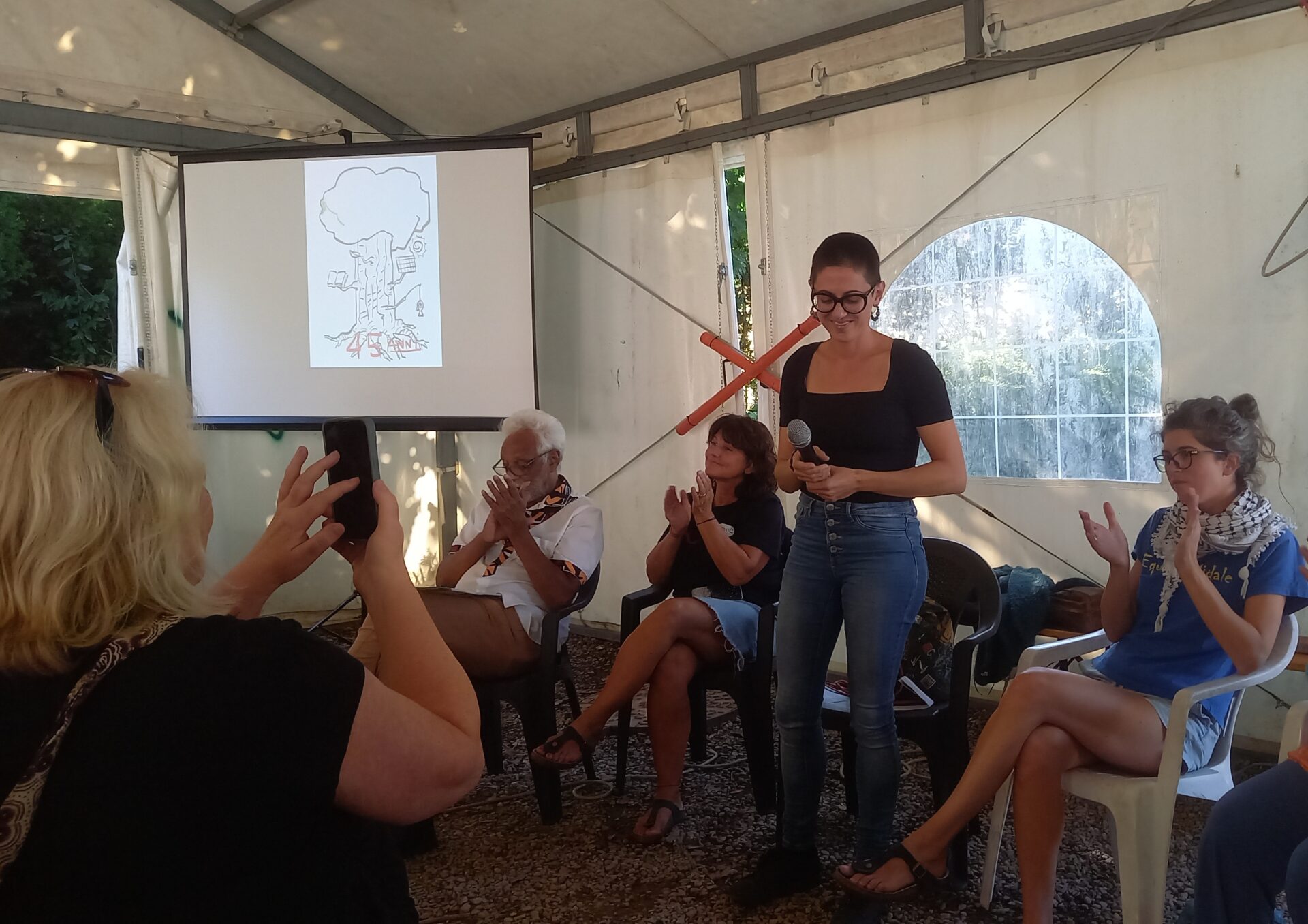 Sempre nel pomeriggio si è parlato di nuovo di radici e di progetti. Storie di iniziative passate, presenti e future raccontate da realtà vive come il GIM, organizzatore di Equalafesta e attivo in tanti progetti sociali e solidali in Africa, Ekonè, con la sua bottega del commercio equo e solidale, il CAST – Centro per un Appropriato Sviluppo Tecnologico, con una lunga storia di interventi in Paesi lontani e progetti locali come il Festival del Futuro Sostenibile, Pressenza e la Cooperativa Ballafon, impegnata nell’accoglienza, l’inclusione e l’integrazione delle persone migranti. Il bravissimo vignettista Francesco Castelli ha accompagnato ogni racconto con un disegno che esprimeva in modo sintetico la “mission” di ogni associazione.