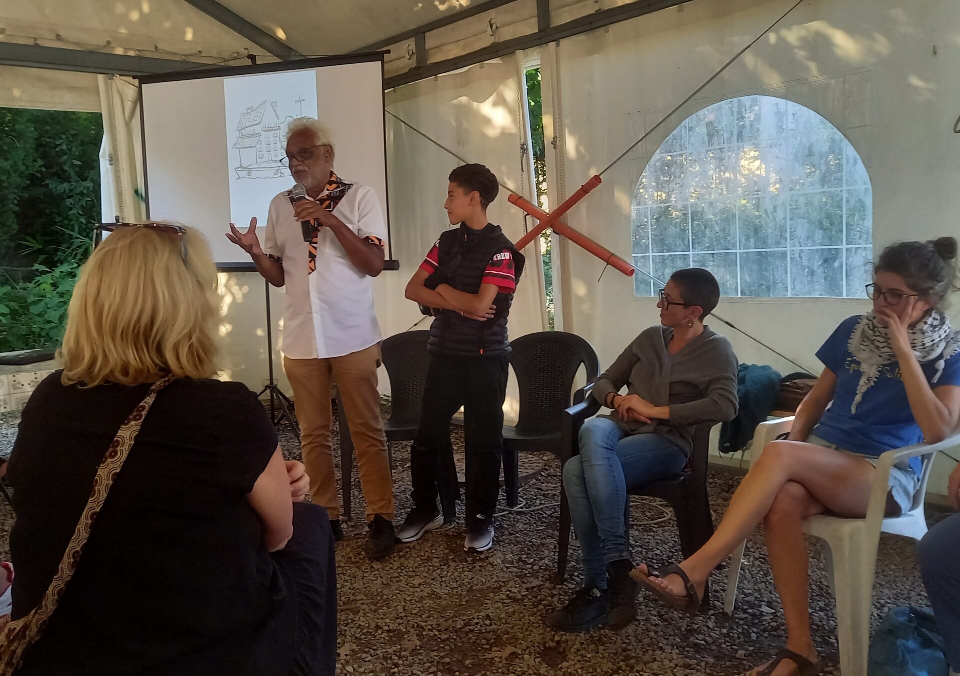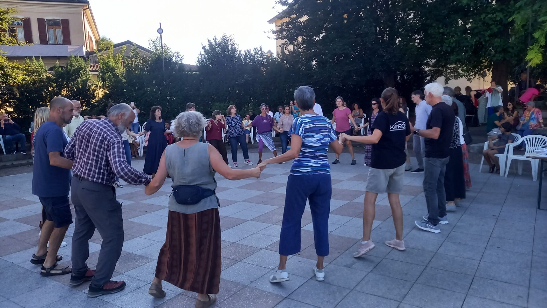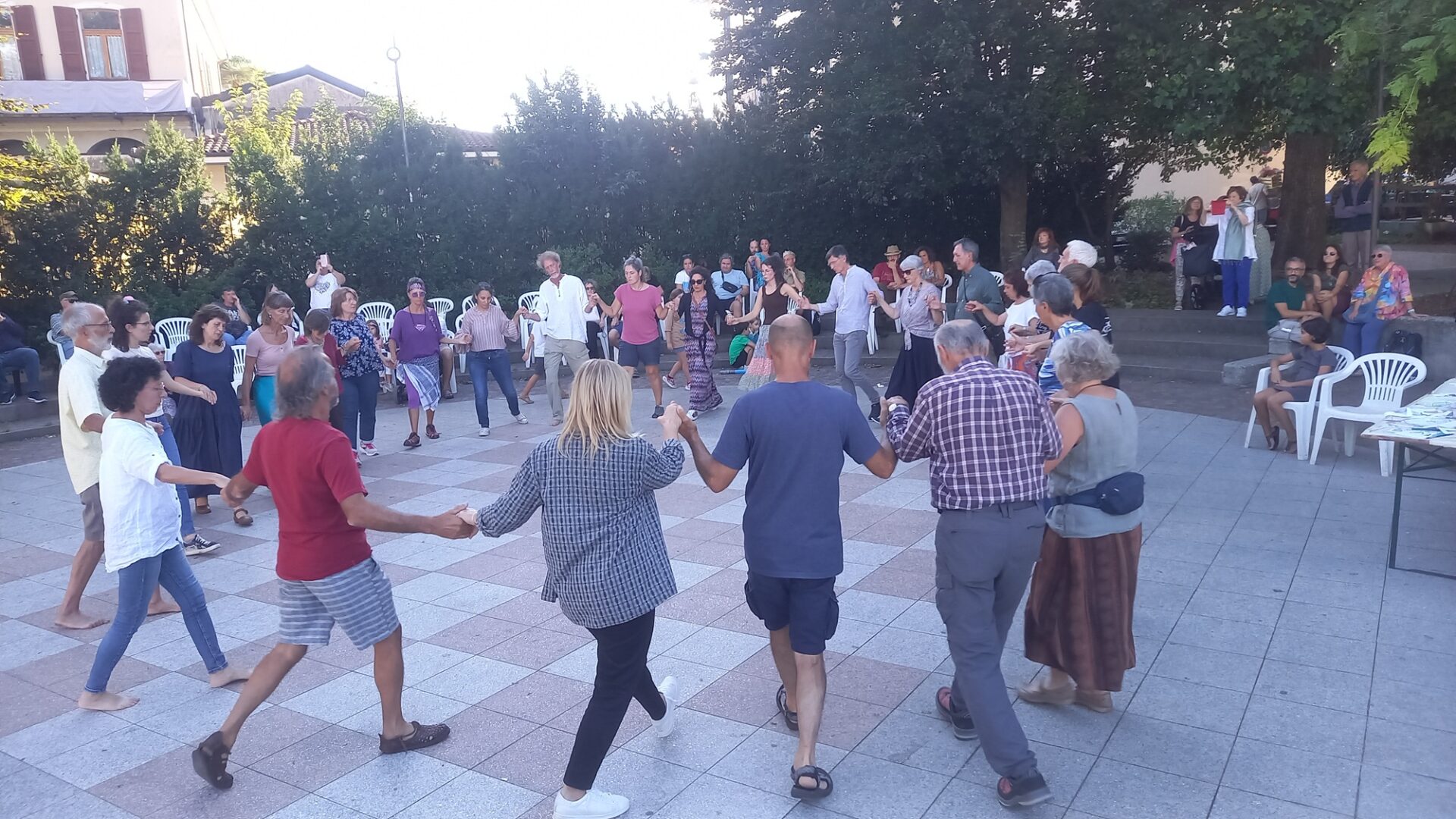 Equalafesta non ha voluto dimenticare le grandi tragedie di questo momento e in particolare l’intollerabile genocidio in atto a Gaza. Il Tavolo per la Pace dell’Alto Verbano, presente con un suo stand, ha esposto cartelli su azioni concrete come le campagne di boicottaggio dei prodotti israeliani, mentre per tutta la festa sono state disponibili le lattine di Gaza Cola. La giornata di domenica si è conclusa con un ottimo aperitivo e con un gesto simbolico di vicinanza: si è formato un grande cerchio per eseguire una serie di danze palestinesi, seguite da danze di altri Paesi accompagnate da musica dal vivo con fisarmonica, cornamusa, chitarra, mandolino, flauto, percussioni e voce.