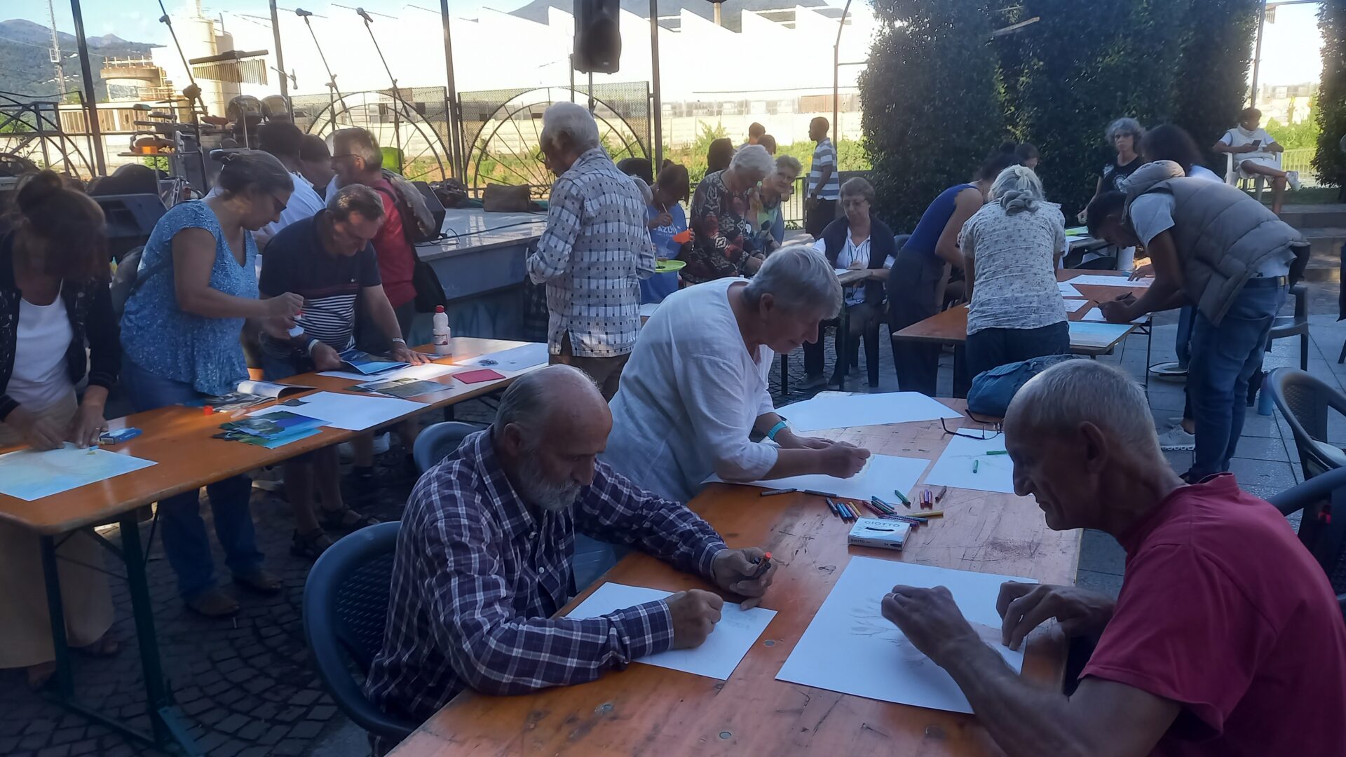 Il tema ha attraversato tutta la festa, a partire dal laboratorio artistico esperienziale per adulti e bambini del pomeriggio di sabato 30 agosto. Con l’aiuto di musiche rilassanti e ispiratrici, dell’immaginazione, della curiosità e di una capacità artistica che molti hanno scoperto di possedere senza saperlo, ognuno dei partecipanti ha disegnato un albero o un fiore di sua scelta, utilizzando l’ampia offerta di pastelli, colori a tempera, gessetti, carta e nastri da incollare. Alla fine tutti i disegni sono stati disposti su un lungo telo verde per formare un bosco variegato e variopinto e uniti tra loro per ricordare la lezione fondamentale che ci viene dal mondo vegetale: in natura tutto è collegato e le piante sono la rappresentazione vivente di come coniugare solidità, flessibilità e collaborazione.