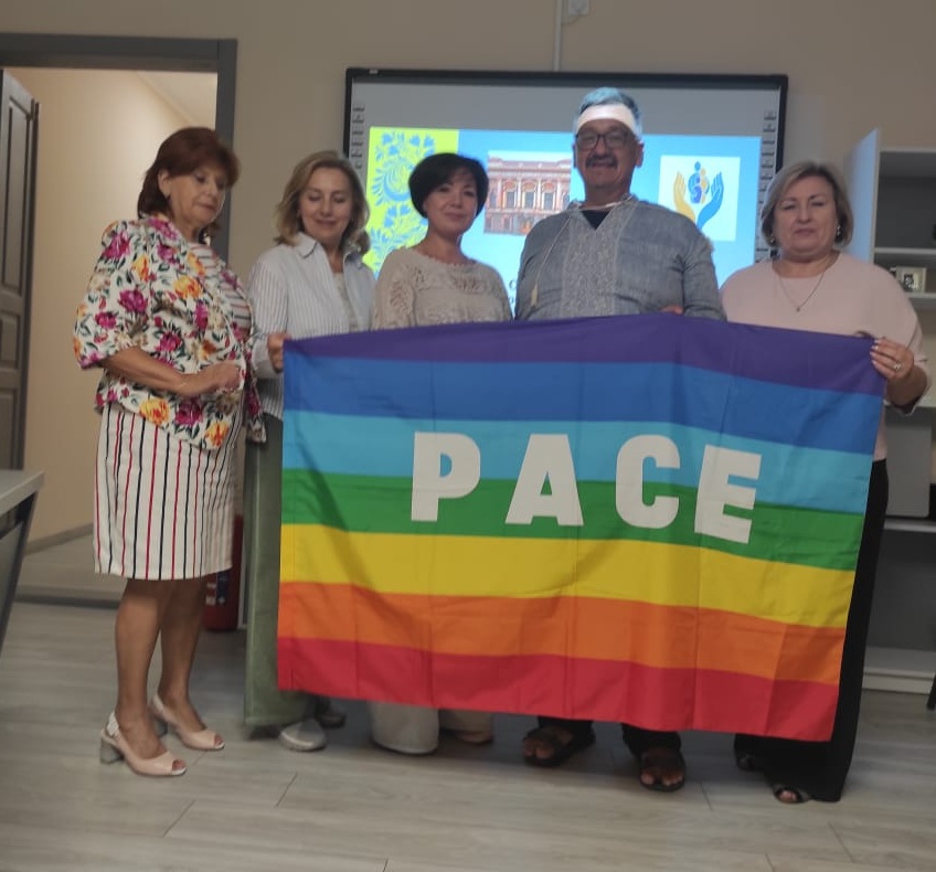 L’accoglienza di tre colleghe insegnanti – Lyubov Korniychuk, Direttrice dell’Organizzazione Regionale di Odessa del Sindacato, Svitlana Zhekova Direttrice della Casa degli Scienziati di Odessa, Lyudmila Berezovskaya, Direttrice del Dipartimento per il lavoro organizzativo e di massa del sindacato – è davvero calorosa. Con loro ci sono le due psicologhe che lavorano al centro: Nadiya Oksenyuk, Direttice del Centro di Riabilitazione e Assistenza Sociale e Psicologica e Lyudmila Rozkoshna.
