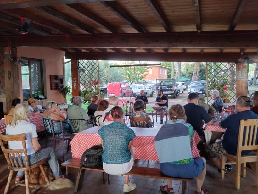 Il festival della Malanotte, quest’anno, si è ampliato e arricchito sempre di più, sempre con uno stile assolutamente dal basso, grazie a piccole e preziose donazioni di vari amici e sodali, in particolare due partner che c’erano anche l’anno scorso: lo Spazio popolare La Deriva di Toro sul Trasimeno, presente con Stefano Terzuoli e Maurizio Pacini oltre ad altri partecipanti venuti da Tuoro e Passignano, ed il circolo culturale Primo maggio, rappresentato da Luigino Ciotti, che ha dialogato con Murat Cinar la sera del sabato per la conferenza sui nuovi risvolti e speranze in Kurdistan e nel Medioriente. Fondamentale la disponibilità dell’ Eden Park che accoglie dal 2022 questa tre giorni “di libri e altre narrazioni”.